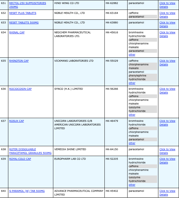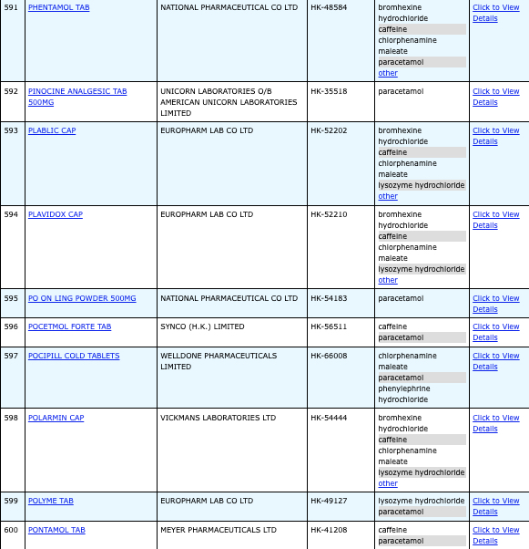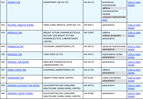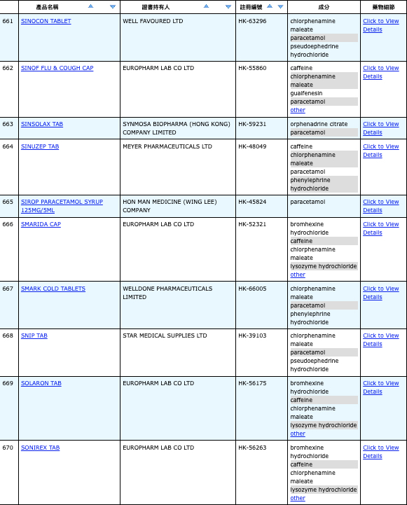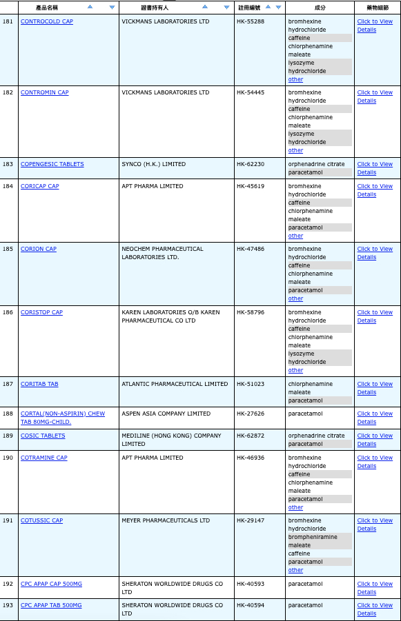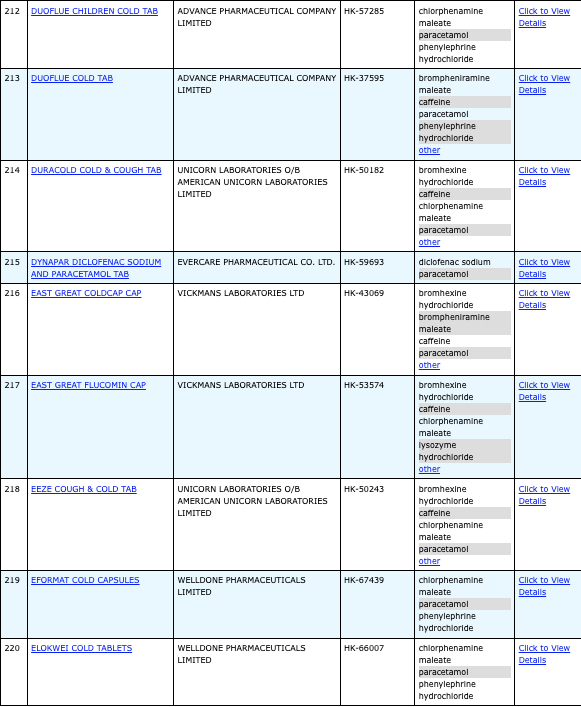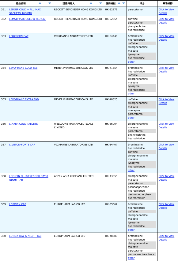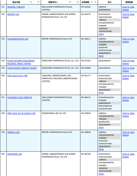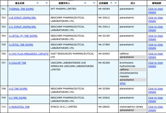 本港756款含撲熱息痛註冊藥物名單