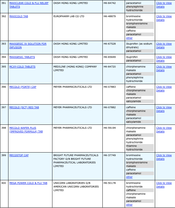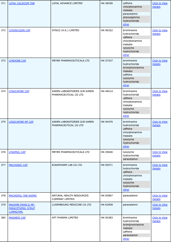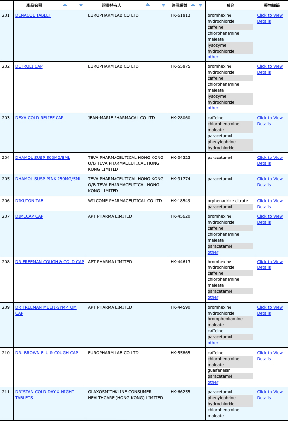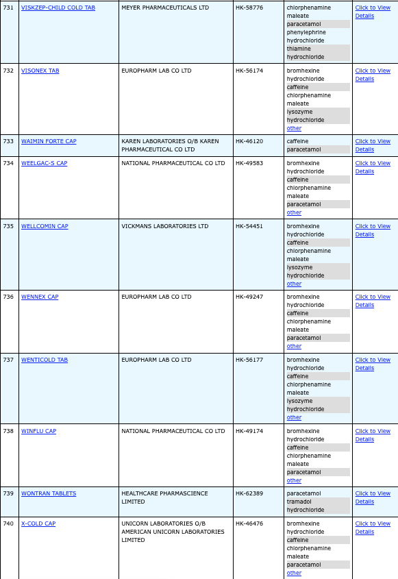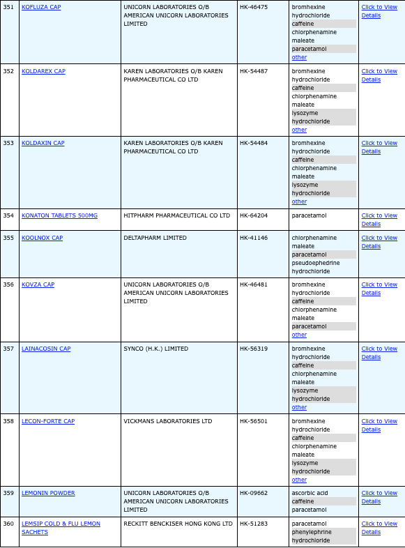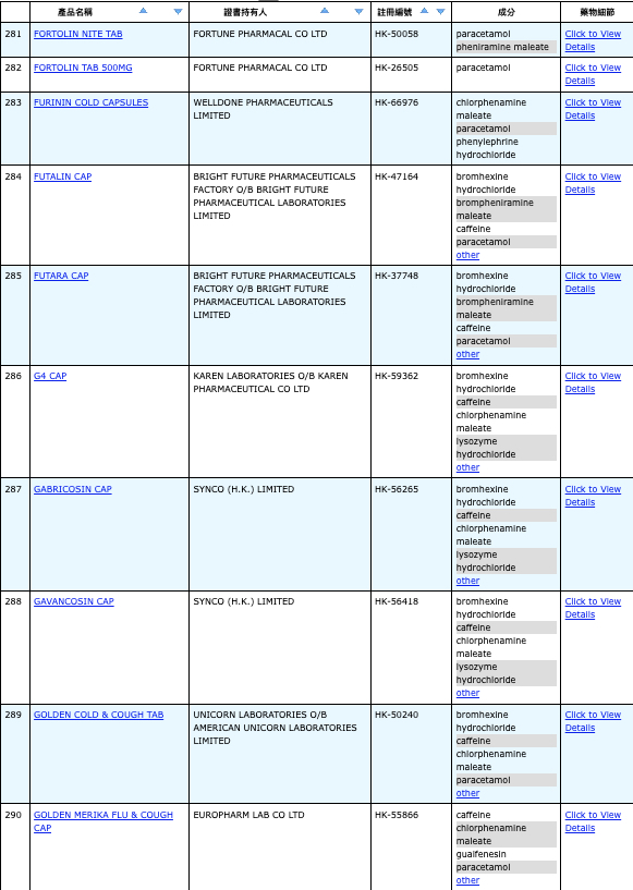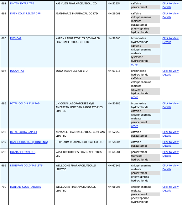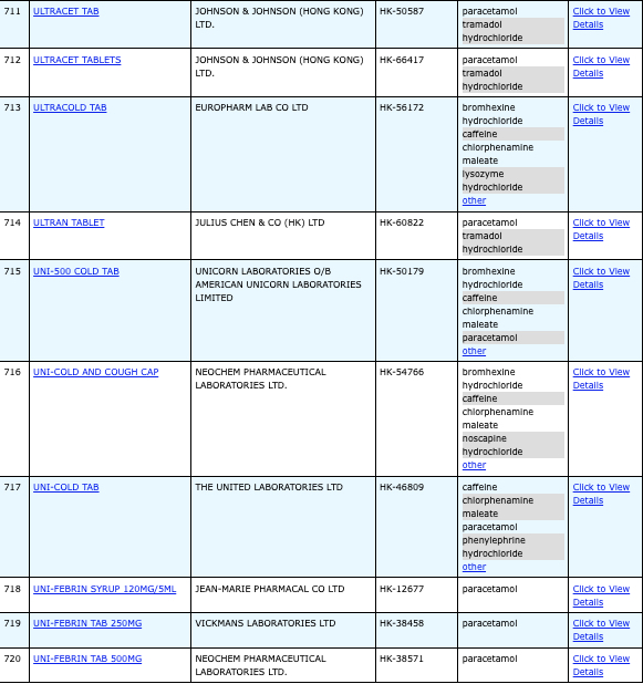 本港756款含撲熱息痛註冊藥物名單