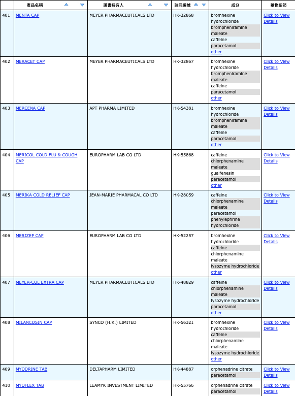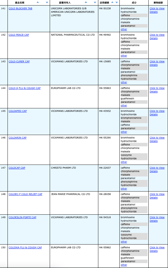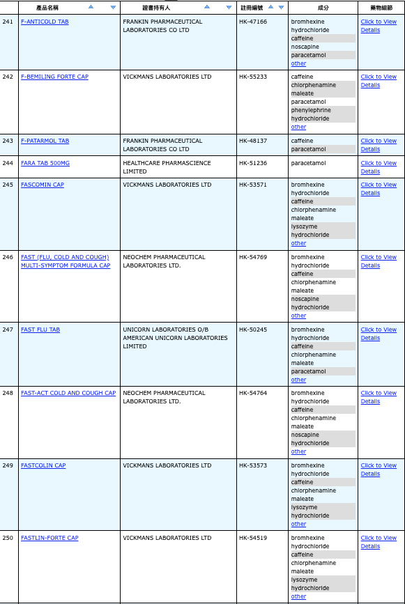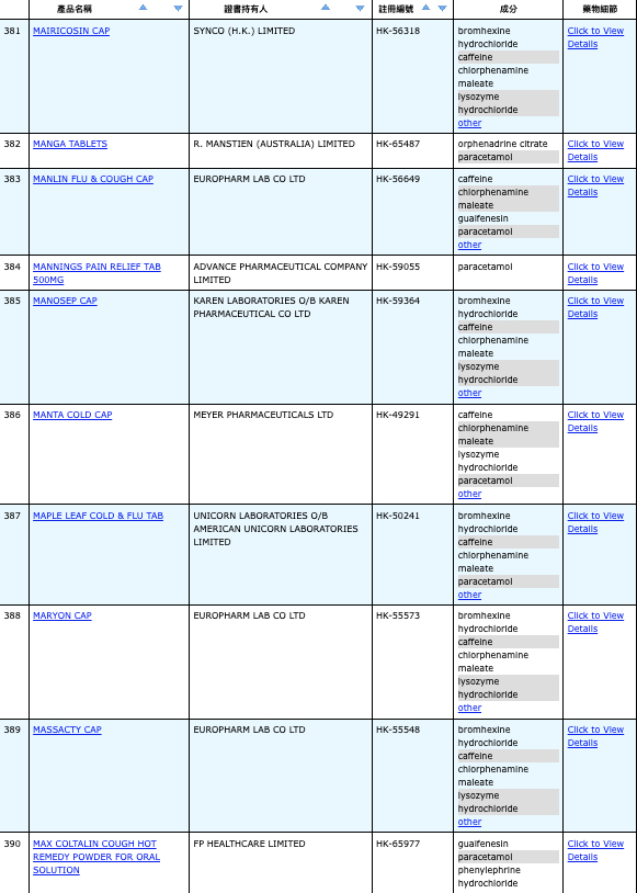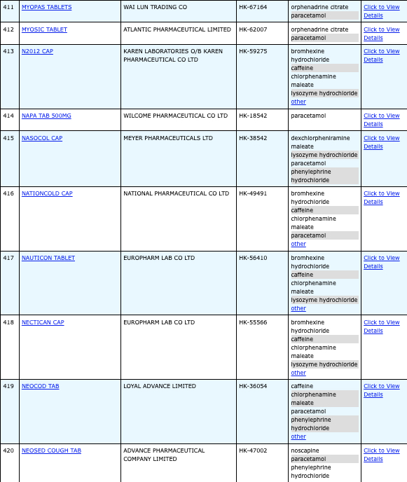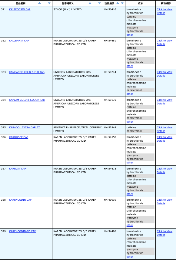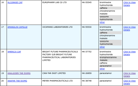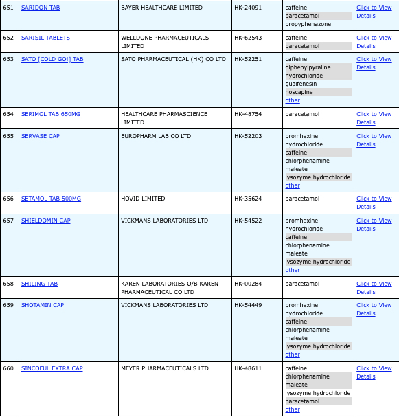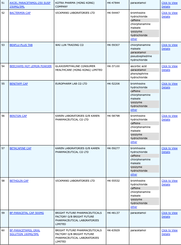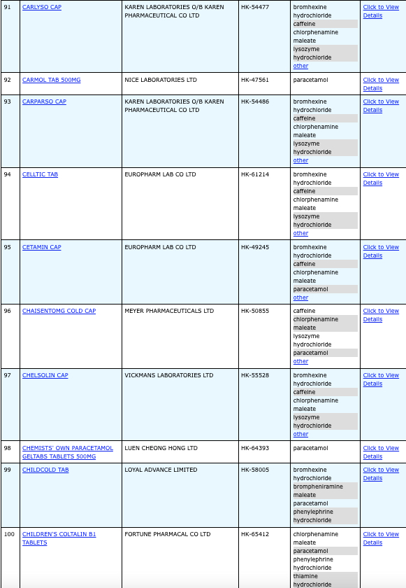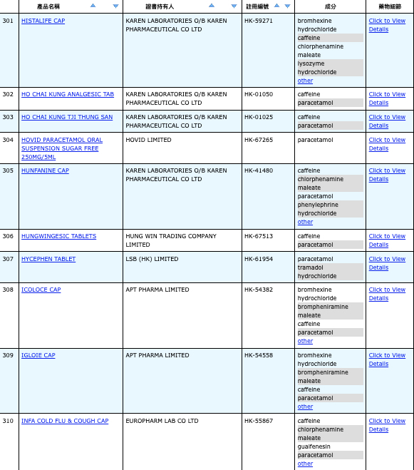 亦即是大家可先到網站,在搜尋位置輸入撲熱息痛的英文「Paracetamol」,再按搜尋的放大鏡,網頁就會顯示756個結果,包括產品名稱、註冊編號、藥物成分、其他詳細資料。