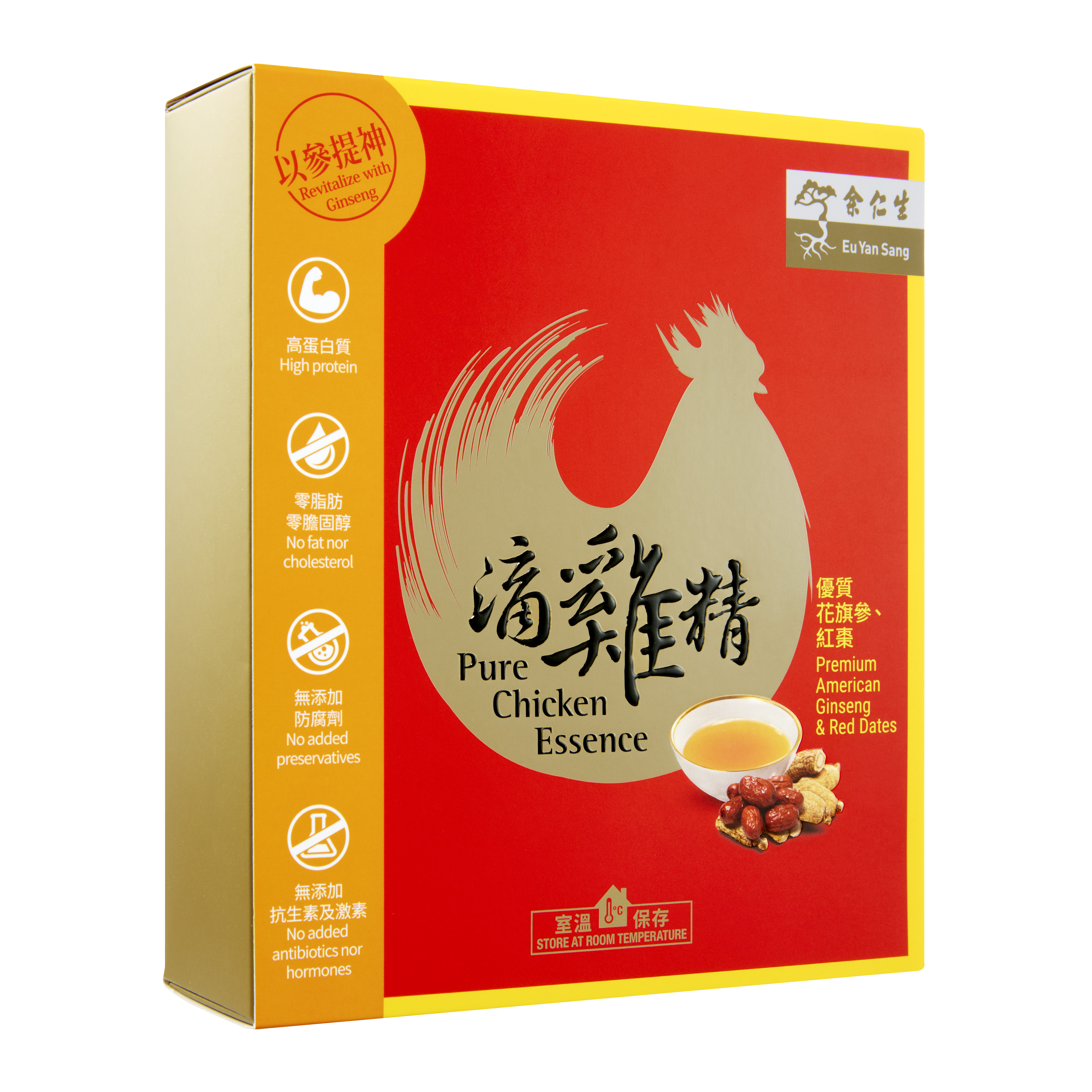 余仁生滴雞精全線系列,堅持以台灣土雞鮮製,能保持鮮雞營養不流失。經8小時高壓溫火、無蒸氣回流技術,滴製萃取雞隻精華,再配合隔油技術制成,其精華能分解成分子較細小之18種胺基酸,有助加快腸道吸收,保持其營養不流失。而且製作過程中絕無添加水份、香料、色素及防腐劑,零脂肪、零膽固醇*,以先進包裝技術製造,可室溫保存毋須冷藏,無雪味和腥味。