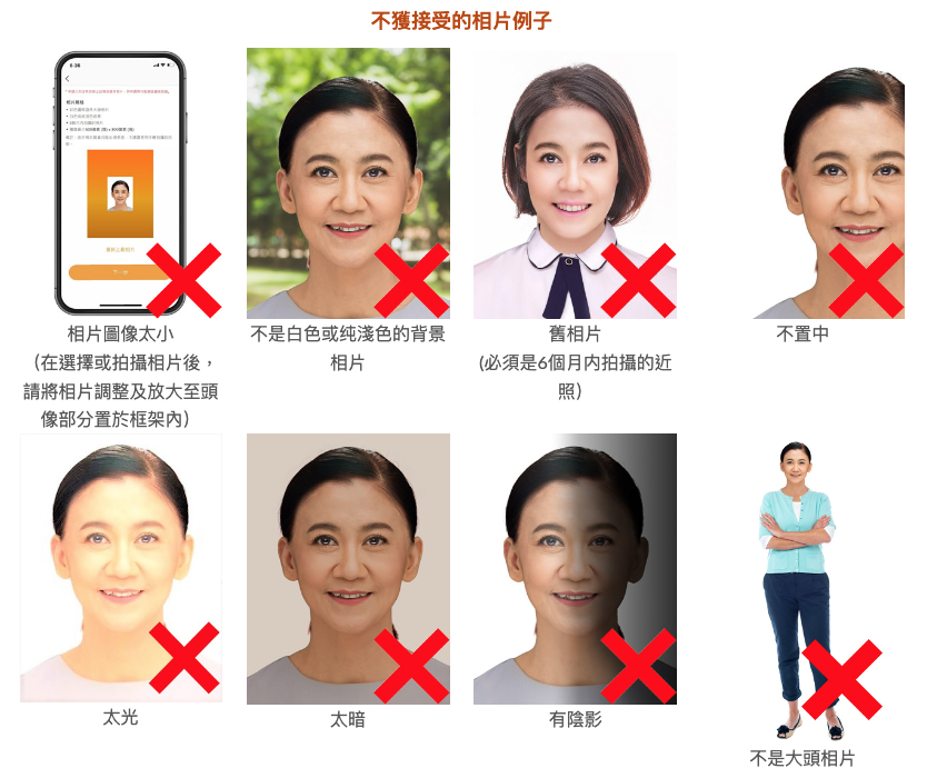 - 如透過電子方法申請,提交的圖像大小需至少 600像素(闊)x 800像素(高)
