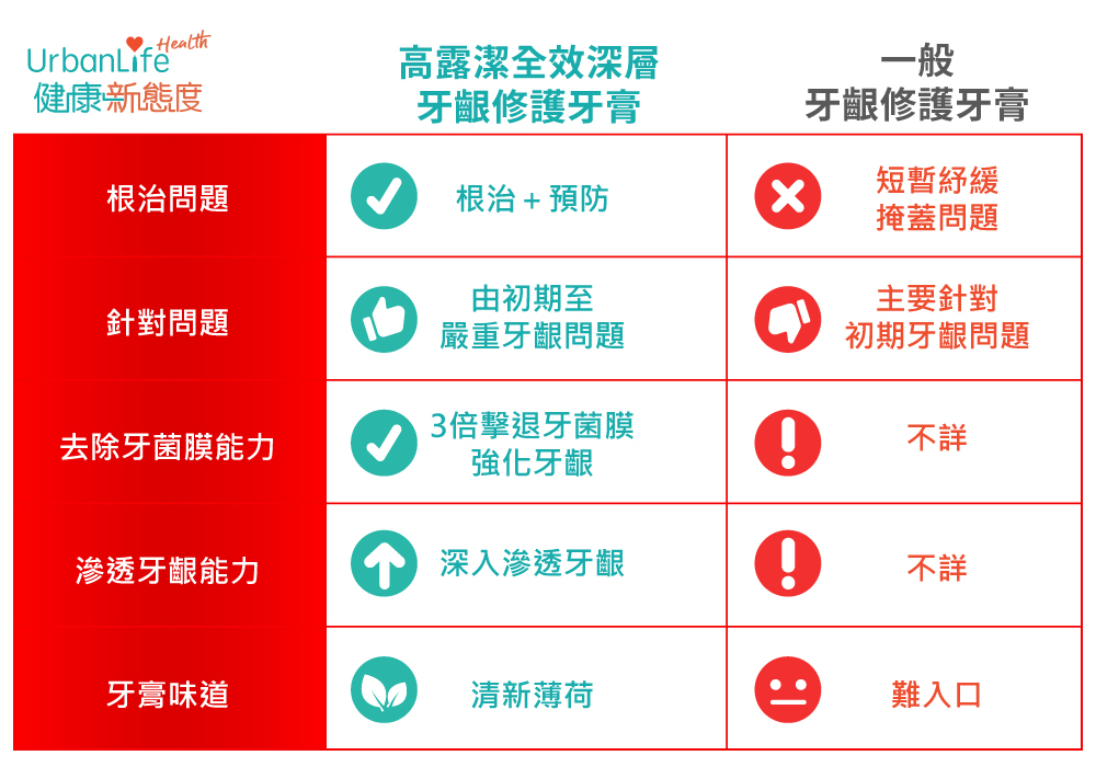 高露潔Total全效專業深層牙齦修護牙膏比一般牙齦牙膏優勝