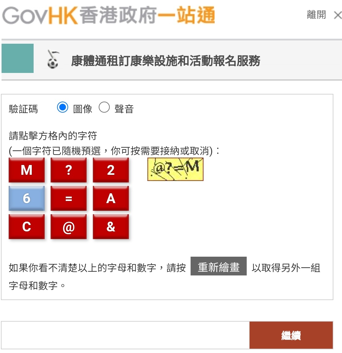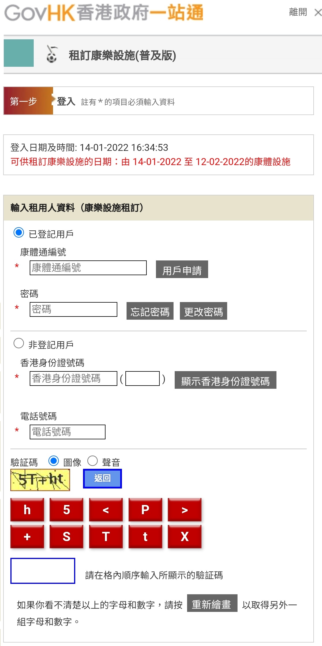 第一步、登入「康體通」網上預訂流動版及輸入驗證碼