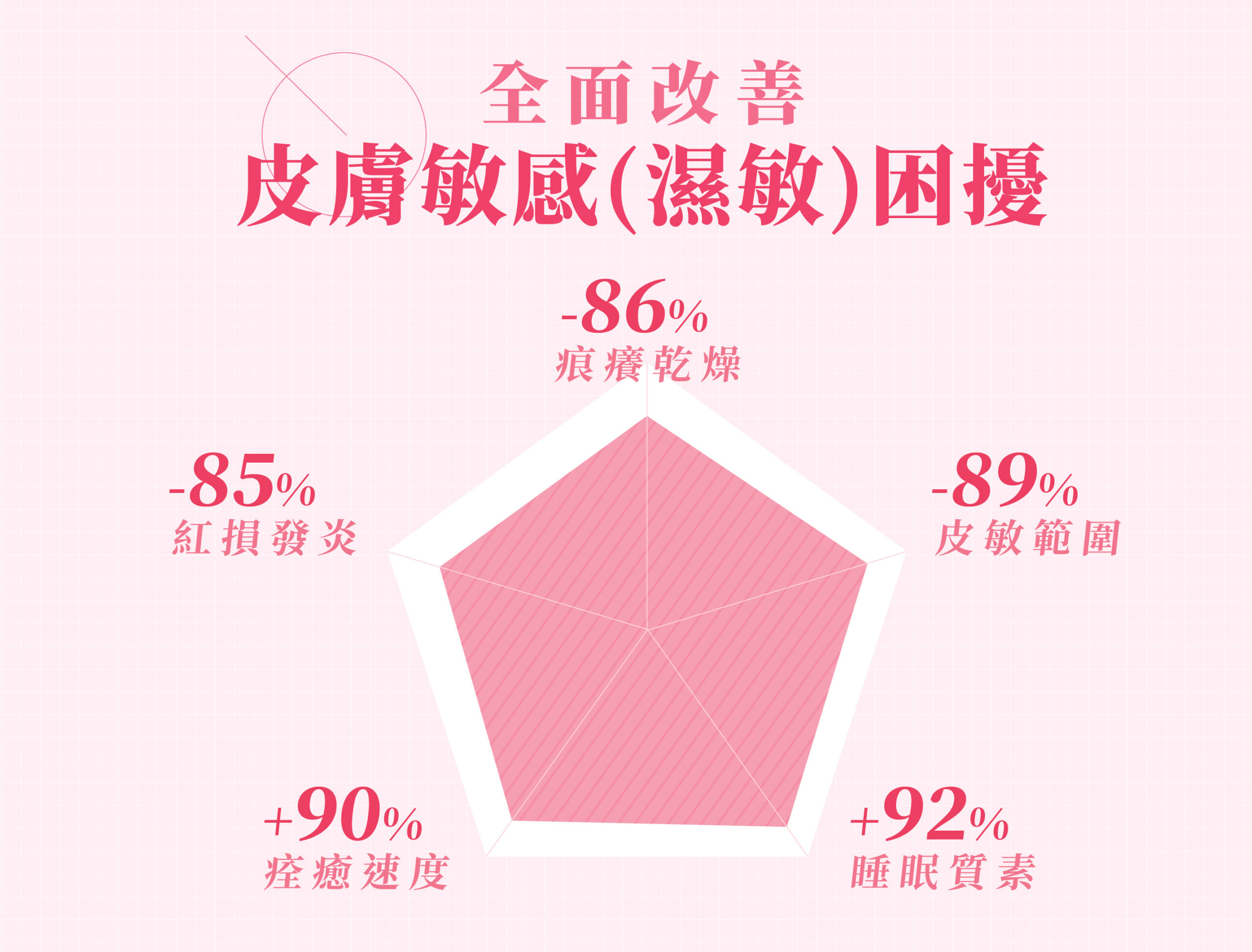 • 改善皮膚敏感徵狀 (止痕、抗紅)