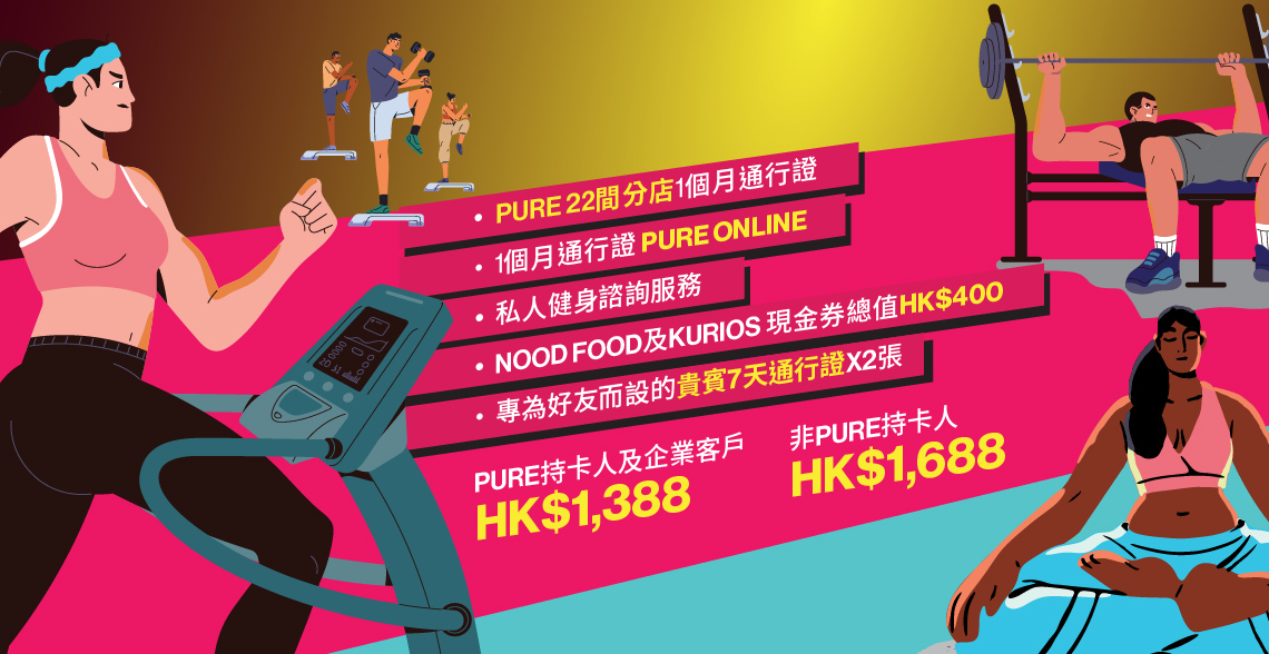 除了 pureform 課程,PURE 集團亦推出雙 11 限時優惠,由即日起至 2023 年 11 月 12 日使用【優惠碼:1111】即可以優惠價港幣 $999購買「POWER PACK」通行證(原價港幣 $1,688)!通行證使用範圍覆蓋 PURE 全港 22 間分店,更可享有私人健身諮詢服務、 NOOD FOOD 及 KURIOS 現金卷總值港幣 $400;再送專為好友而設嘅貴賓 7 天通行證 2 張!仲可以優惠價加配營養食品、課程或訓練組合等禮遇,為自己或親友挑選最合適的健康配套!