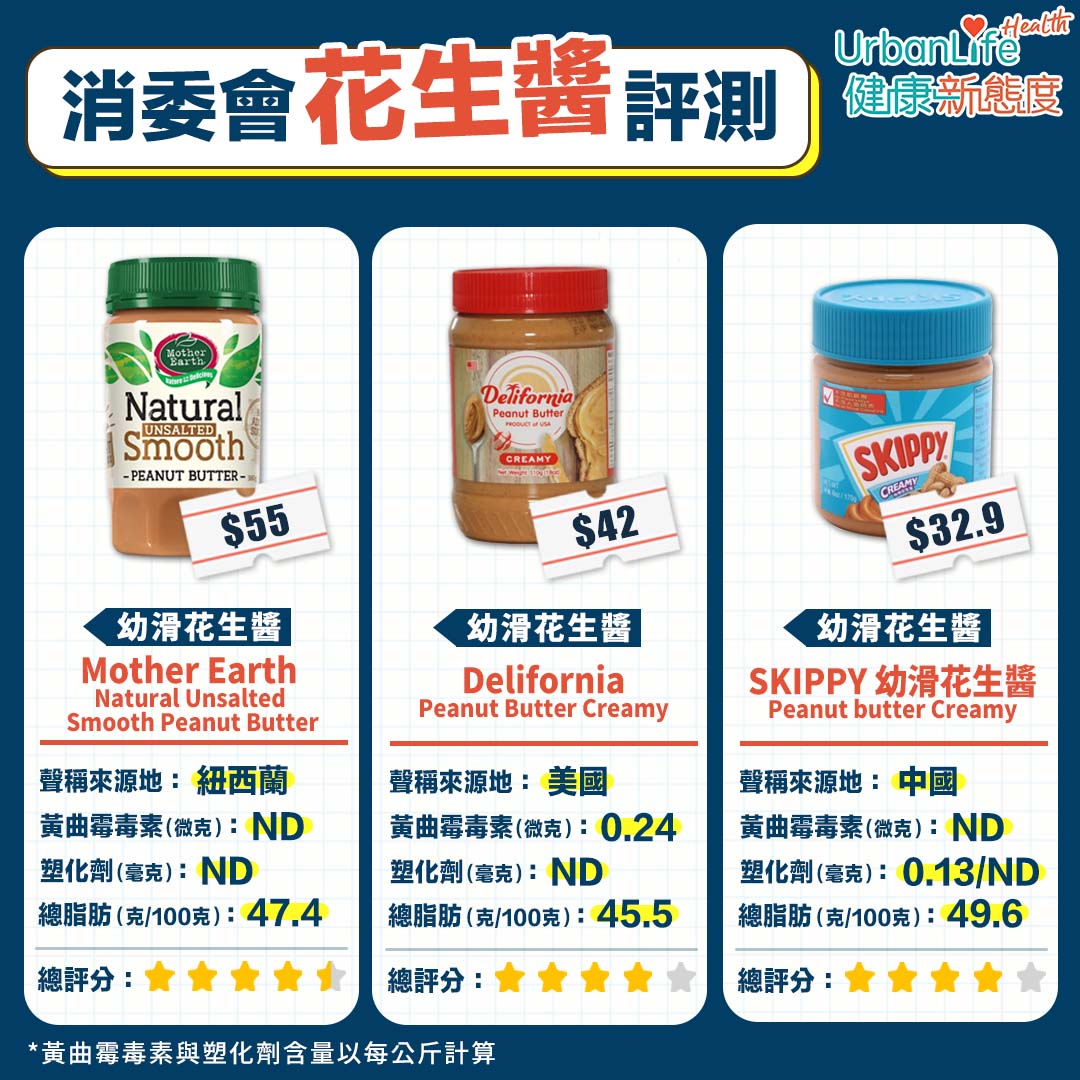 | Mother Earth Natural Unsalted Smooth Peanut Butter | 紐西蘭 | $55 | 沒有檢出 | 沒有檢出 | 3.5分 | 4.5星 |