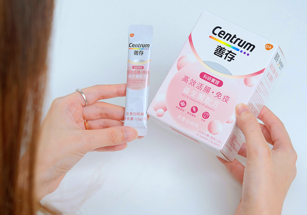 新推出的「善存高效活腸。免疫益生菌配方」,由博士及營養師組成的專業醫學團隊研發而成,專注腸道健康,特有專業封存及冷凍乾燥技術,製造出高穩定性的益生菌。特選由丹麥進口的菌株,耐酸性強,有效抵抗胃酸,令90%活菌直達腸道,平衡腸道微生態,發揮提升核心免疫力的作用。額外添加鋅及膳食纖維,對促進免疫系統及腸胃健康很有幫助。淡香白桃味,無添加蔗糖,低脂無負擔。每日一包,免疫力 level up!