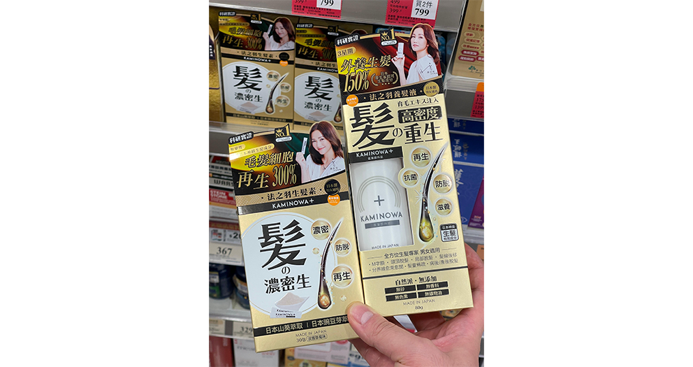 Kaminowa 法之羽獲日本厚生省認可生髮效果,採用有機、天然、獲科學證實具改善毛髮生長的成分,提供一系列頭髮潔淨及護理產品,促進生髮同時抑制掉髮因子、抗炎去油味,功效顯著,產品亦由日本脫髮護理皮膚科醫生及頭髮診斷專家推薦,安心及效果保證。當中,Kaminowa 法之羽養髮液及Kaminowa 法之羽生髮素深受日、港、台用家歡迎。 配合使用:外用養髮液,內服生髮素,外養防斷、內補增髮,3星期生髮150%⁺,減少掉髮64%⁺。