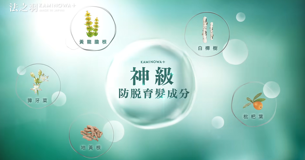 日本製、無藥性的Kaminowa 法之羽養髮液,內含生髮成分Swertianin Extract ,獨有的「生髮酶」,改善血液微循環,喚醒處於休眠狀態的毛囊,提升毛髮再生力!配合抑制掉髮因子的地黃根萃取物、調節頭皮油脂分泌的甘草酸二鉀、黃龍膽根萃取物及枇杷葉萃取物,抗炎走頭味,促進毛囊健康。加入白樺樹萃取物,增加頭髮的膠原蛋白及水分,令頭髮更亮澤、富彈性、強韌不易斷!科研證實,Kaminowa 法之羽養髮液能於3星期生髮150%⁺ 、減少掉髮64%⁺。