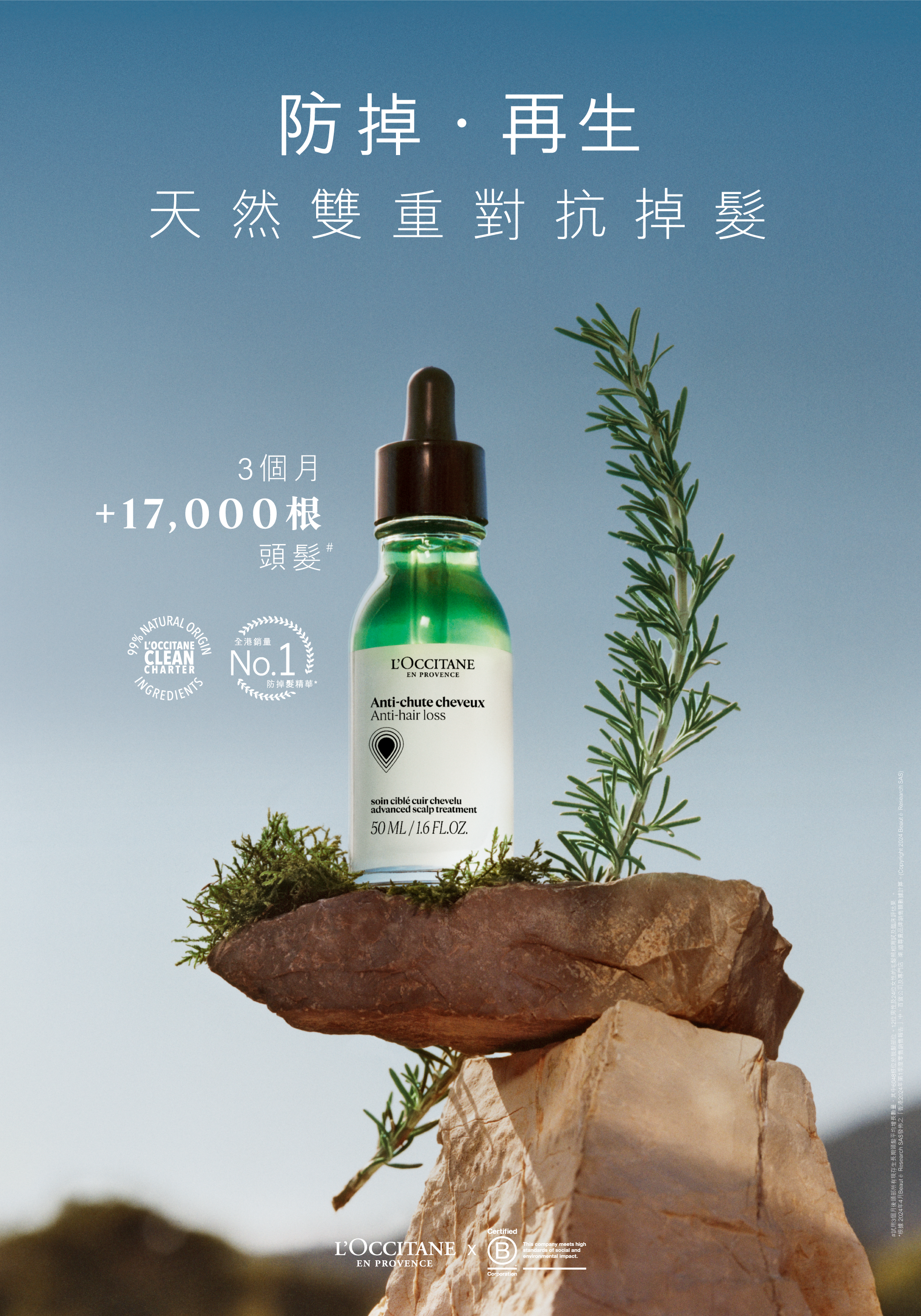 正如前述,化學成分有機會刺激頭皮,因此,選擇頭皮護理產品,首選成分天然的。L'Occitane草本療法防掉髮頭皮護理精華,香港銷量No.1 防掉髮精華# ,採用99%純天然原材料製造,配合使用3個月,有效增加超過17,000 根頭髮*;92% 使用者梳頭後梳上落髮減少^,髮根堅固度達 47%、頭髮濃密度增加 36%、頭髮厚度增加 30%,整體頭髮變得豐盈濃密。