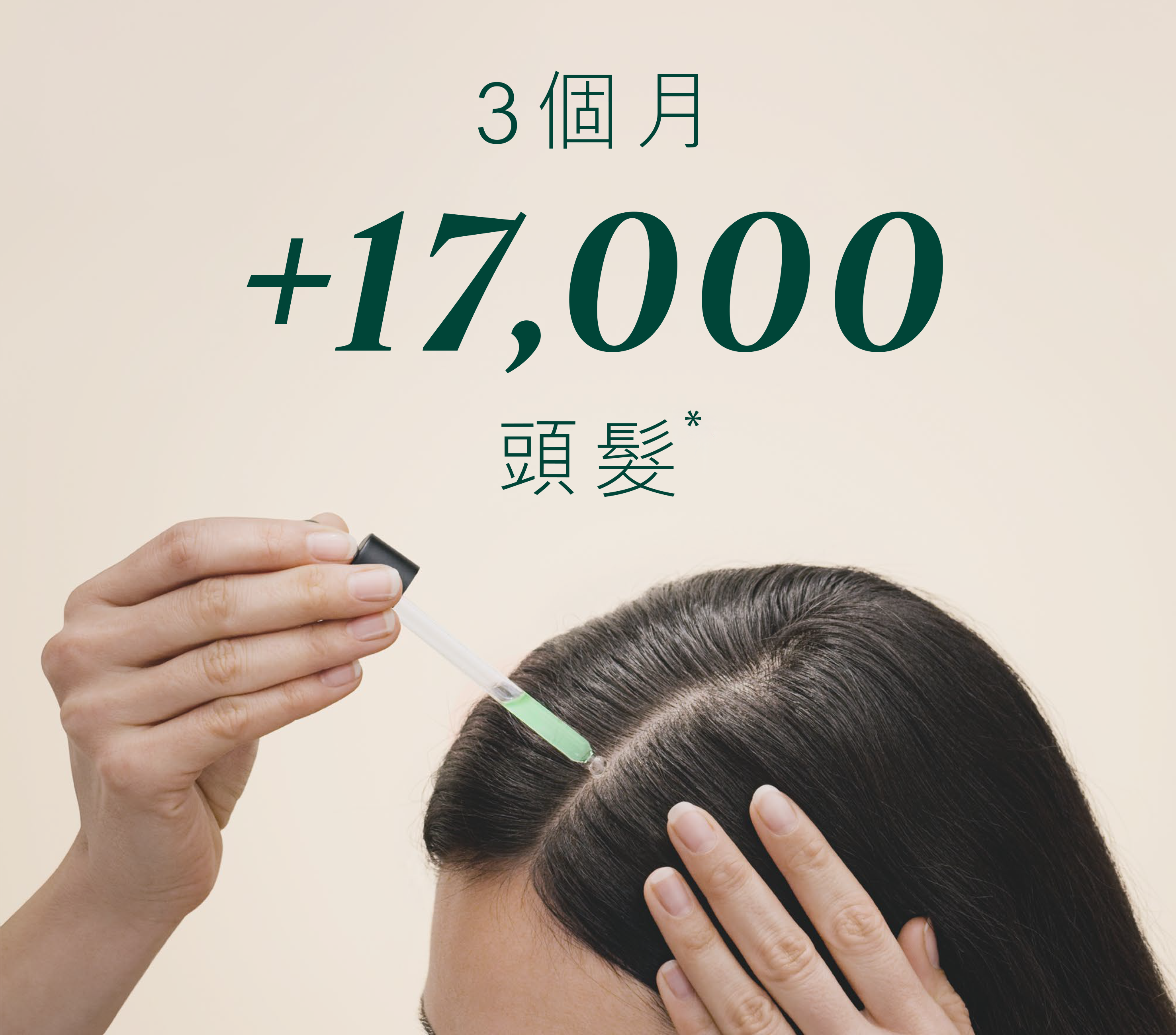 *試用 3 個月後頭部所有現存生長期頭髮平均增長數量,其中 6048 根位於脫髮部位。12 位男性及 24 位女性的毛髮照相測試及臨床評估結果。