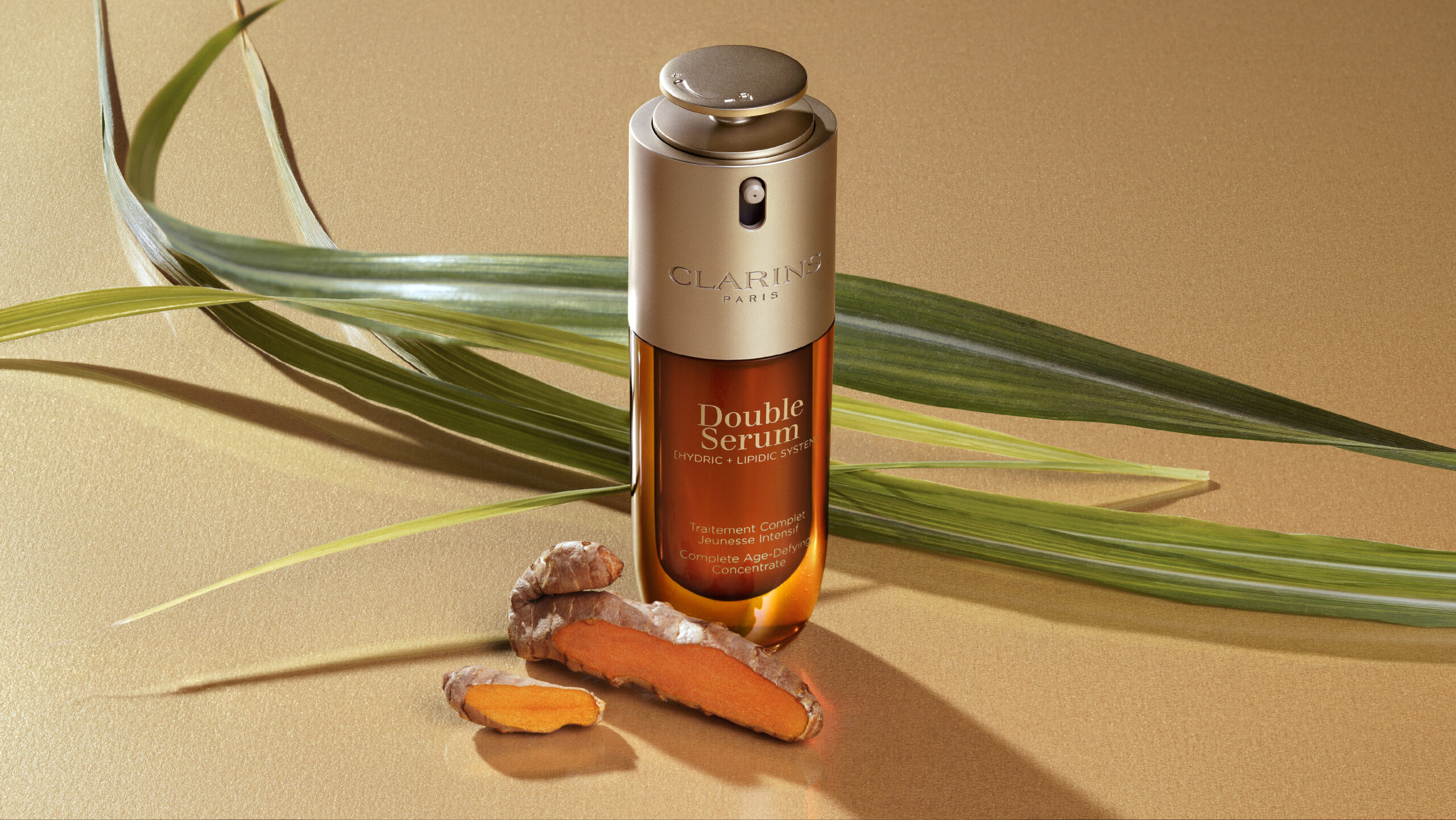 CLARINS第9代DOUBLE SERUM賦活雙精華更快、更有效²,以22種高效植物植萃及5種活性成分,組合成革命性水+油親膚黃金抗衰老配方,抵禦及修復外來環境造成的侵害、激發細胞自癒再生、全面擊退「表觀老化」。用後肌膚出現4項顯著的改善:皺紋可見度-21%、毛孔可見度-25%、肌膚緊緻度+32%、透亮光澤度+54%³,足以證明Clarins第9代DOUBLE SERUM賦活雙精華有效逆轉歲月痕跡,改變肌膚未來,讓你肌膚昨天更見年輕。