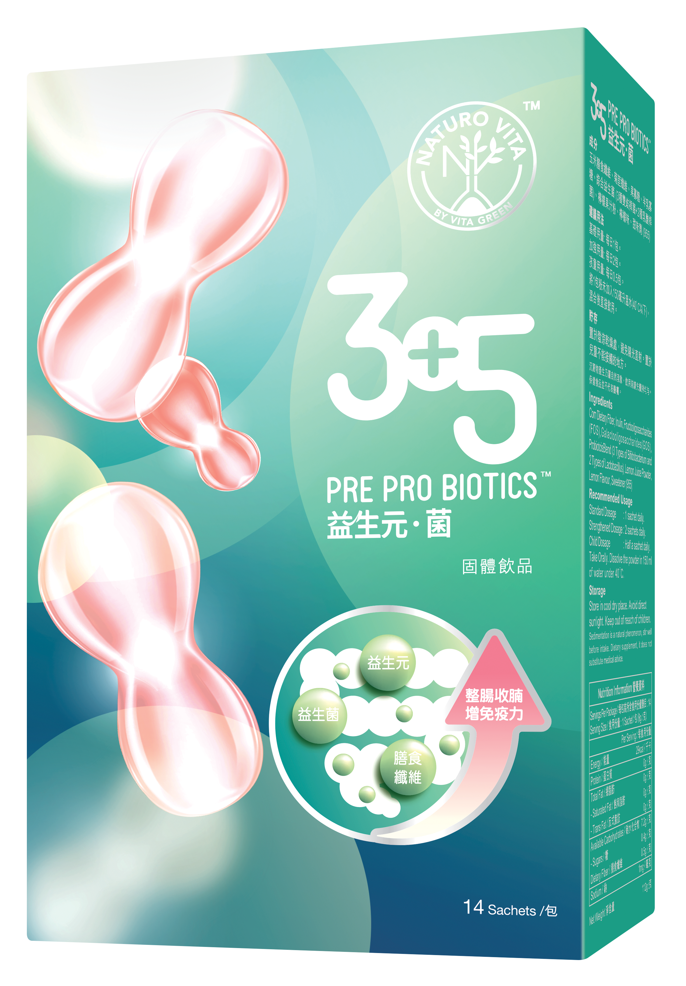 「3+5 益生元菌」的12倍重量級配方*,除了提供強效的益生元菌之外,還含有豐富的膳食纖維,可以促進腸道蠕動!從而達至天天輕鬆便便,防止「宿便」積存。同時,「3+5益生元菌」的8層凍乾保護技術,令益生菌能夠耐酸耐熱,確保益菌可以直達腸道發揮最大功效,每一個小細節都照顧得到!