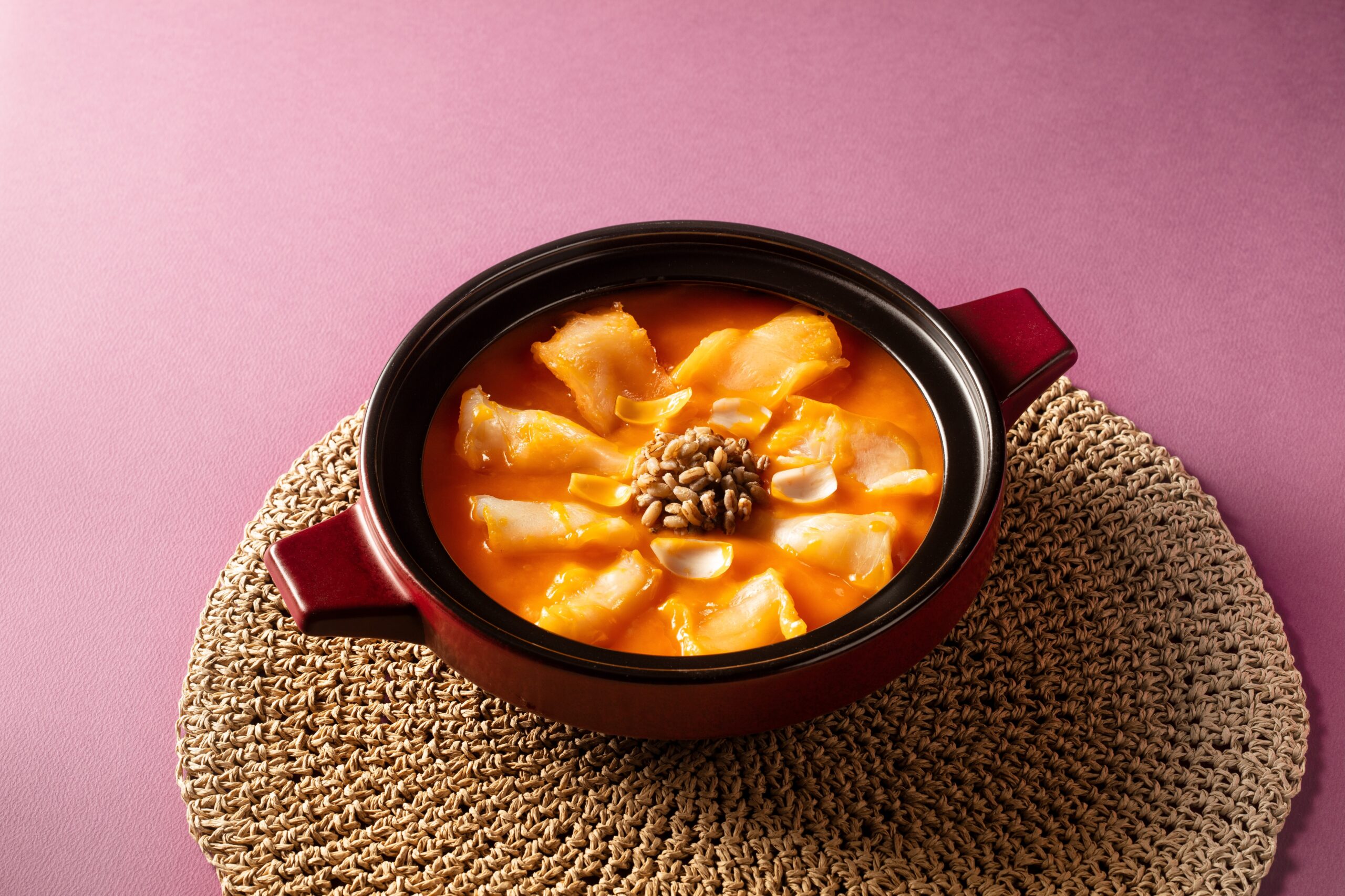 靚媽們留意!這道潮菜美點將美顏與健康消化結合,珍貴花膠提供強效滋陰養顏功效,是保持皮膚彈性的秘密。配搭南瓜(金湯主要成分)有助於補充益生菌,以及來自西藏的青裸米提供豐富膳食纖維,幫助媽媽們由內而外輕鬆排毒,煥發光彩。