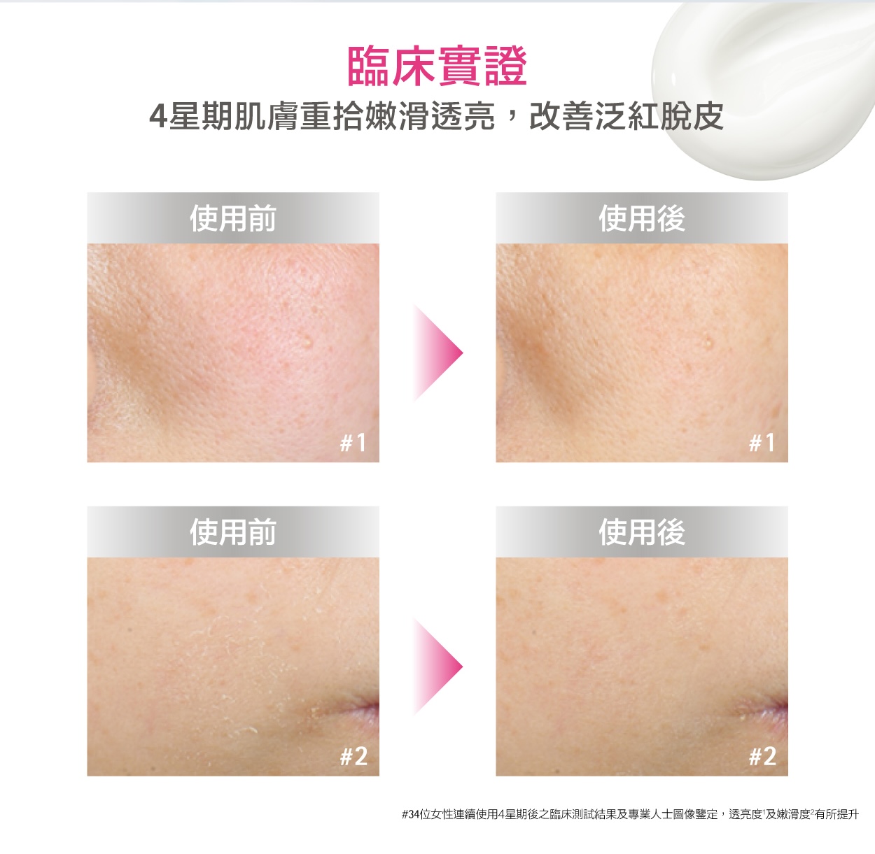 ²34位女性連續使用酵母益生元修復面霜4星期後之圖像測試結果