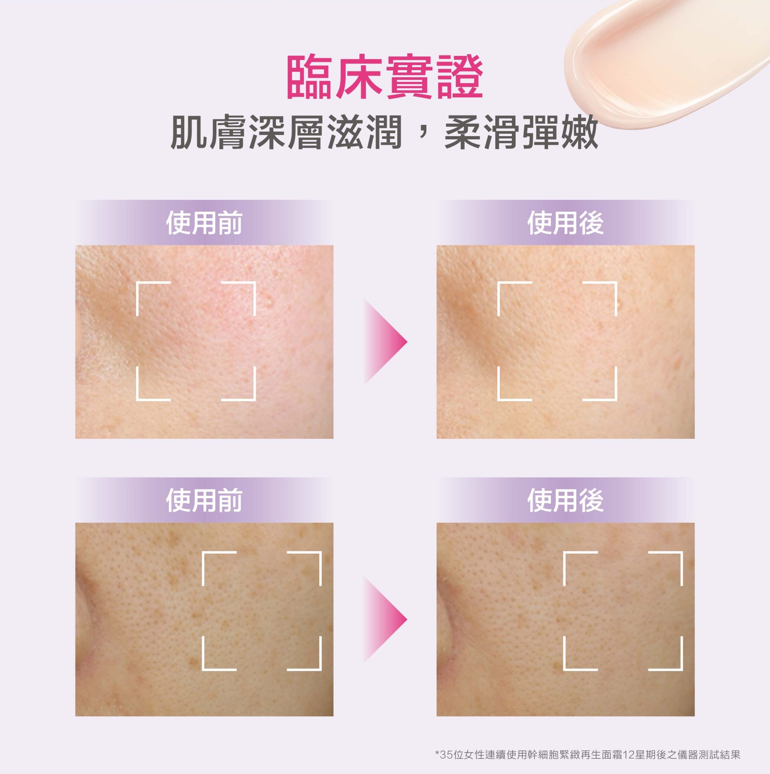 ⁷35位女性連續使用幹細胞緊緻再生面霜8星期後之儀器測試結果