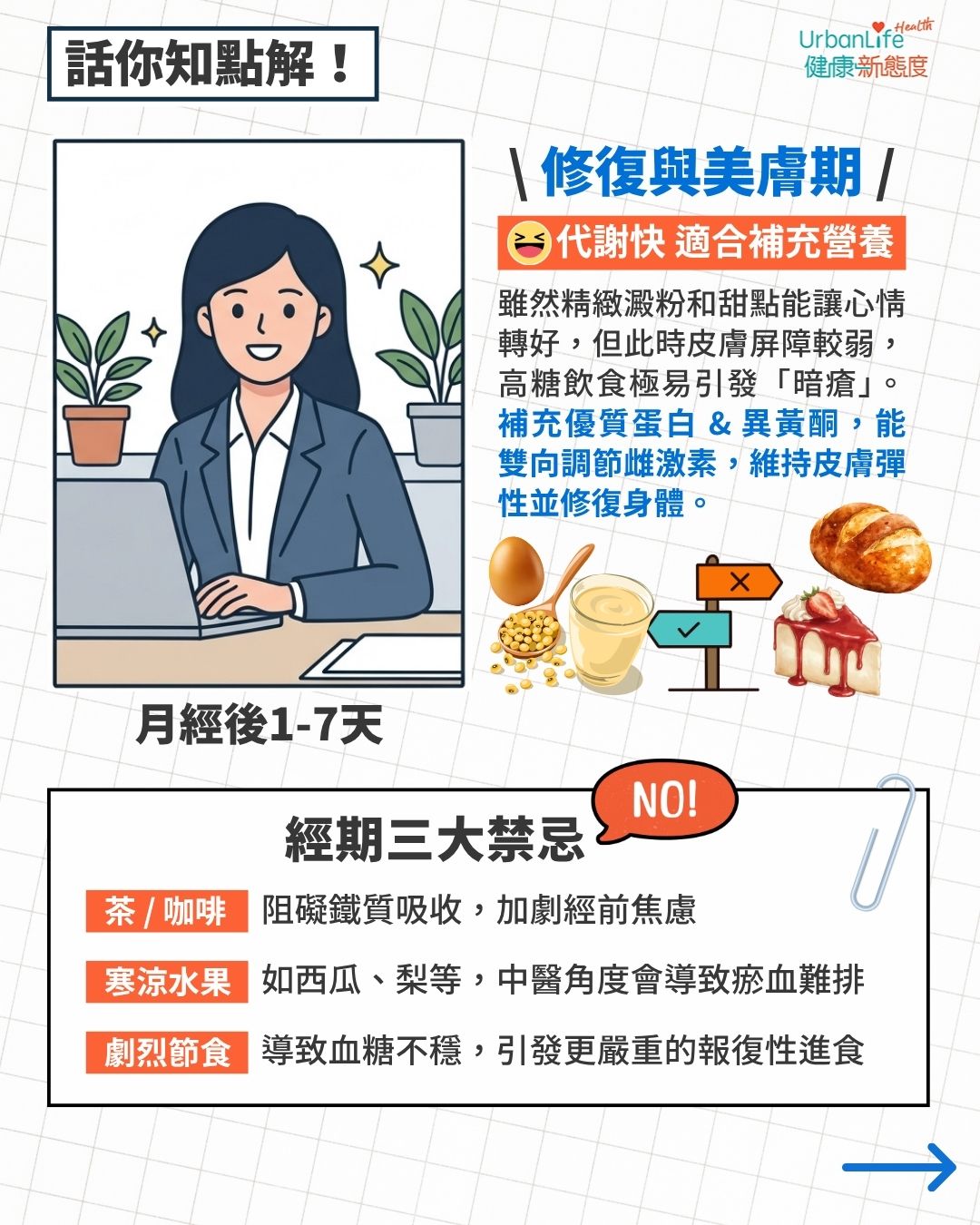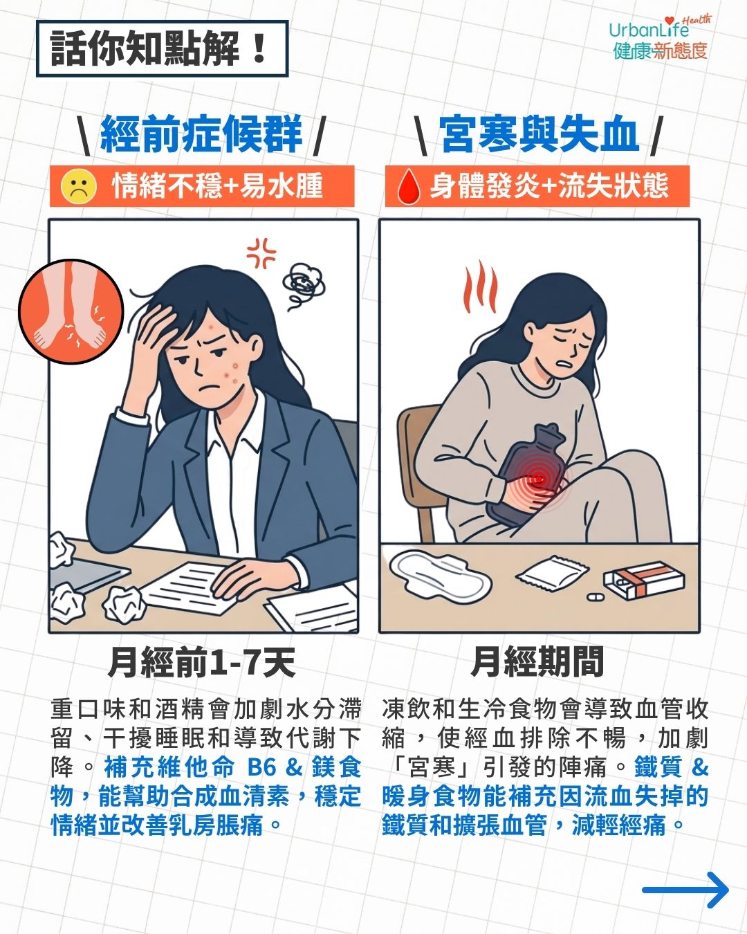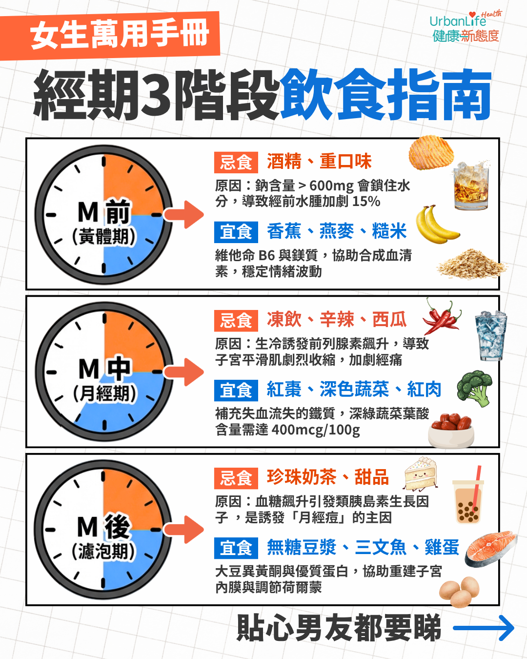 根據《美國醫學會雜誌》(JAMA)研究顯示,全球約 75% 的女性曾受不同程度的經前綜合症(PMS)困擾。若能根據經期 3 階段進行精準飲食介入,不僅能緩解痛楚,研究指出更能讓女性在生理期期間保持注意力集中,避免「轉頭就唔記得要做乜」的腦霧情況。
