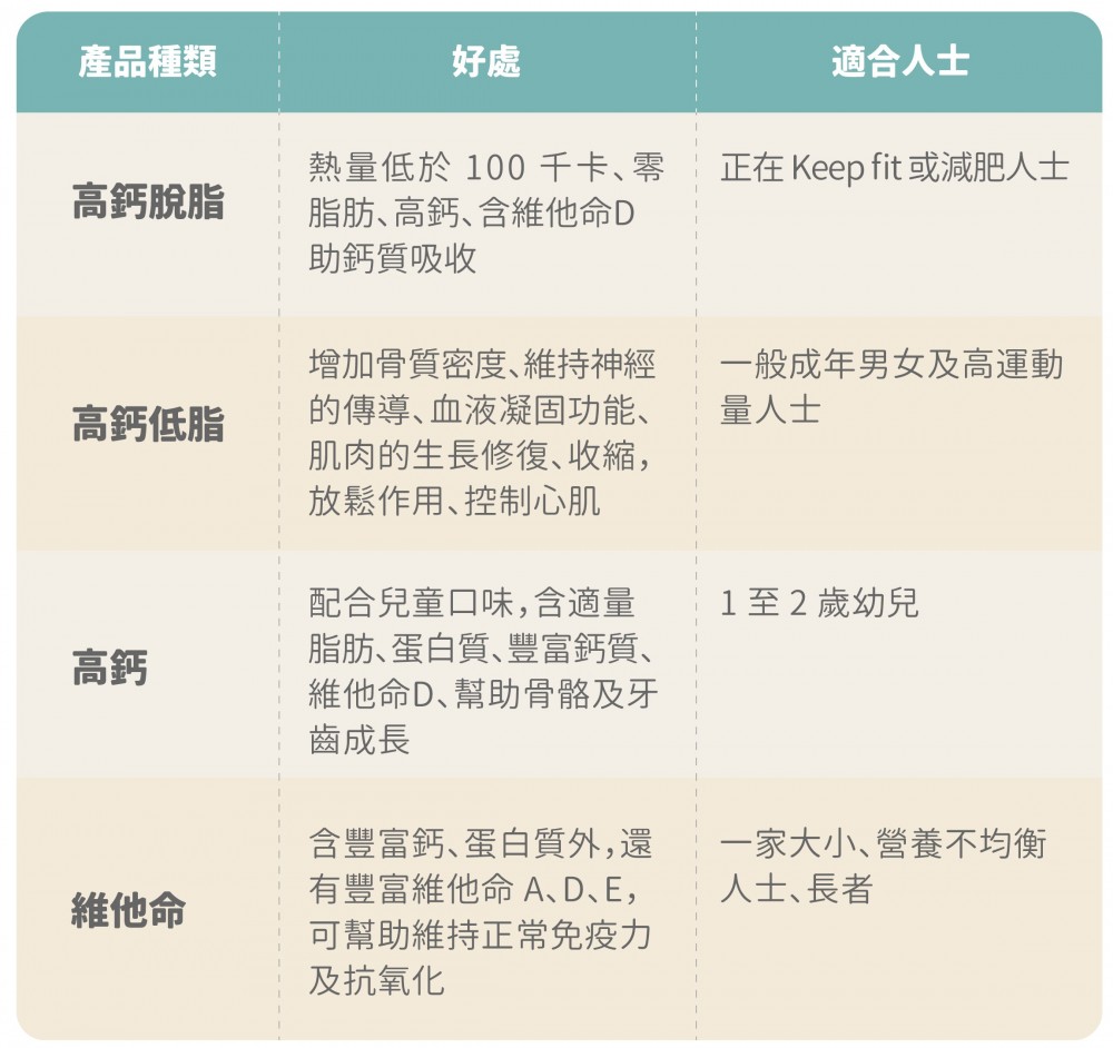 讀者可以按年齡、體質及營養所需,選擇適合自己的牛奶產品。只要選得對,無論是Keep fit修身、高運動量人士、還是想小朋友成長健康都可以事半功倍!