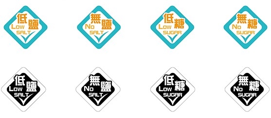 預先包裝食品「鹽/糖」標籤一套共四款:「低鹽」、「低糖」、「無鹽」、「無糖」,設有中文、英文及雙語,同時備有彩色和黑白版本,食品製造商可自行決定標籤大小及印於食物包裝上之位置。消費者在選購食品時,只要認住以上標籤就可以輕易揀選到低鹽、低糖、無鹽和無糖的預先包裝食品!
