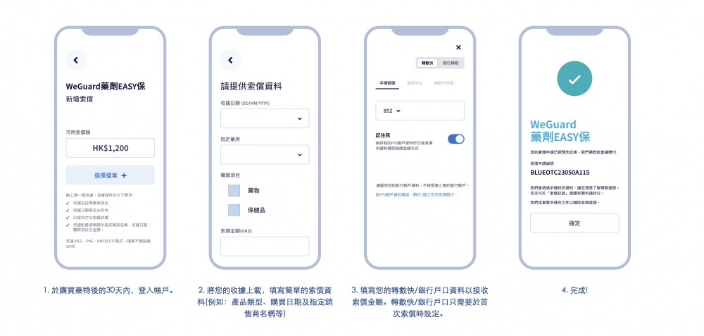 「WeGuard藥劑EASY保」涵蓋之藥物及保健品類型廣泛,包括配方藥物、中西成藥、維他命及保健品,甚至急救用品、眼藥水、止痛貼及口罩等一些日常護理藥物都屬於保障範圍內,受保人只需到全港超過5000間指定銷售商、網上商戶或一般持牌藥房(例如:萬寧、 屈臣氏、DON DON DONKI、7-11便利店、OK便利店、百佳超級市場、惠康超級市場、一田超級市場、崇光百貨、759阿信屋等、HKTV mall、iHerb.com、Herbalife等等)購買藥物及保健品並保留收據,之後上載收據並填寫簡單索償資料,即可最快於一天內接收索償款項。