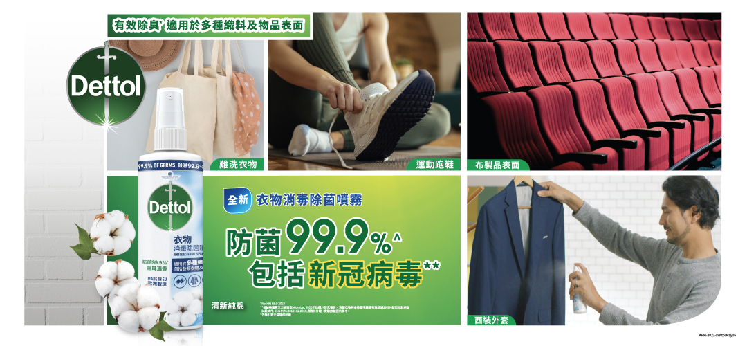 新推出的「滴露衣物消毒除菌噴霧」有效防菌99.9%,包括新冠病毒,更有效除臭,帶有清新純棉香味。回家後噴於西裝外套、運動鞋、背包、手袋等,即可一步消毒!而且體積細小,方便攜帶,當需要坐在巴士座椅、診所布梳化、公司座椅時,噴一噴,做足雙重保護,即可大大減少病菌「痴身」風險!