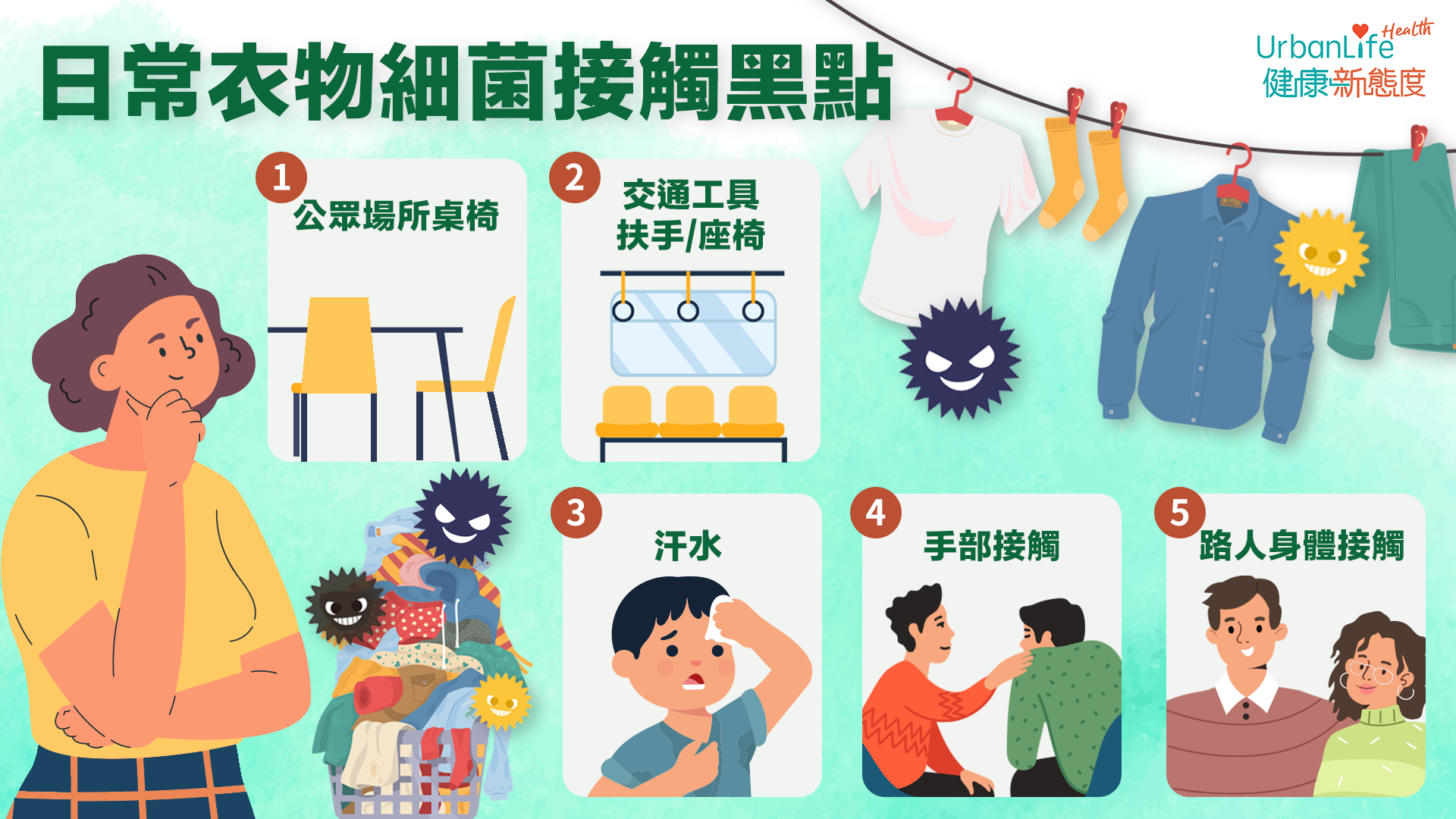 我們每天出門其實都被細菌重重包圍,上班時同事間的身體接觸;上學時鄰座同學的咳嗽;炎熱潮濕天氣下在汗水中人擠人;午飯時在餐廳共用枱凳;出入地鐵/巴士車廂,都會容易沾染到病菌,跟著你回家,讓自己同屋企人健康受到威脅。