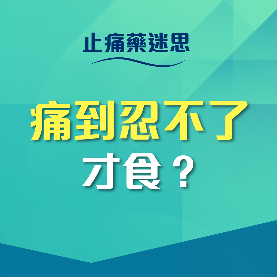 當痛症出現時, 部分人會選擇忍痛, 當痛到忍受不了的時候,才服用止痛藥。其實,大家應在痛症剛開始發作時可立即服用止痛藥紓緩,這可盡早紓緩痛楚,亦可減低因痛楚不適連帶的其他負面精神狀態,盡快回復狀態及防止痛症更嚴重惡化。如痛症已到比較嚴重時才服藥,效果未必最理想。當然如果疼痛嚴重或已持續一段時間,就應該尋求醫生的協助。