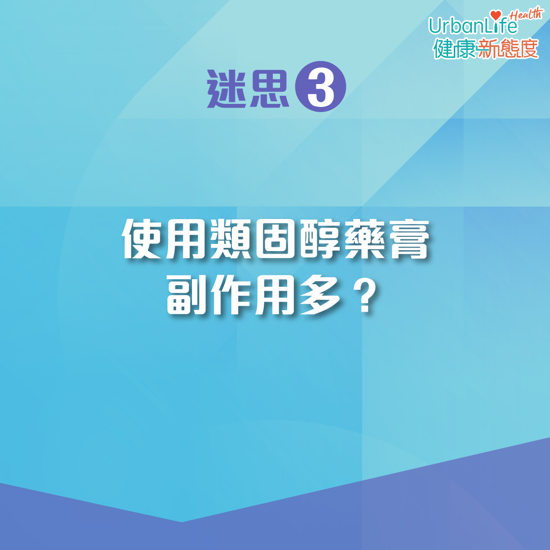 在以前的年代還沒有其他較好的抗炎藥物、藥膏,若患者的濕疹比較嚴重而保濕成份高的潤膚膏也沒有幫助時,唯一的選擇就是使用類固醇。但不少家長害怕為子女使用類固醇藥膏,因為其副作用多,甚至影響發育。胡醫生指很多家長一聽到類固醇就感到害怕,但若果炎症非常嚴重而影響小朋友的日常生活或睡眠質素,其實比起使用類固醇,這些影響更深遠。