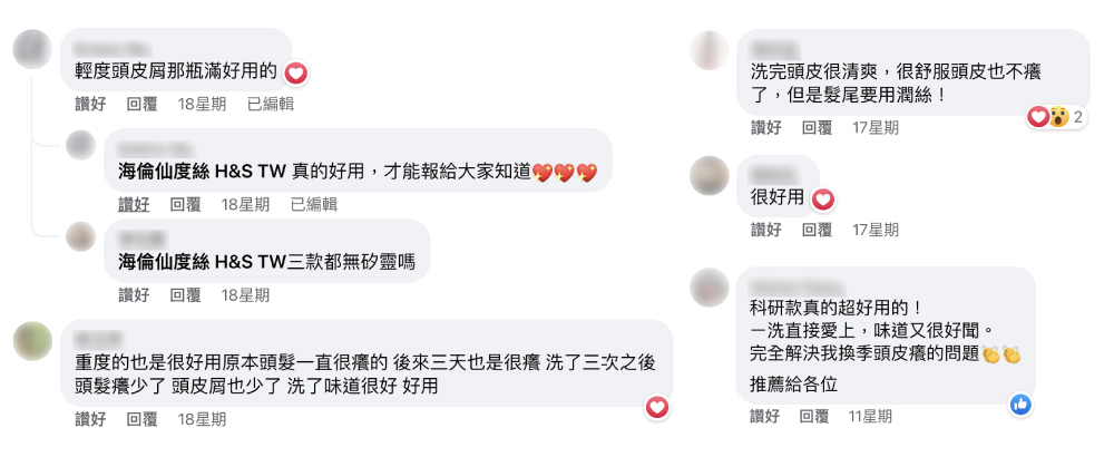 Head & Shoulders「訂製去屑」系列是否真的有效?看看用家分享最直接!早前台灣網民用後,紛紛留言大讚功效:「輕度頭皮屑那瓶滿好用的」、「重度的也是很好用原本頭髮一直很癢的,後來三天也是很癢,洗了三次之後頭髮癢少了,頭皮屑也少了,洗了味道很好,好用」、「洗完頭皮很清爽,很舒服頭皮也不癢了,但是髮尾要用潤絲!」、「很好用」。